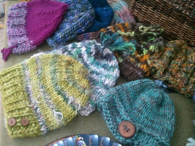 Kathy, who runs the Roadrunner market, also picked up her custom order today: black snowboarding hat with lime green dreadlocks in a mohawk down the middle, a first for me. Way too bad we didn't get a picture of that before it went to its new owner!